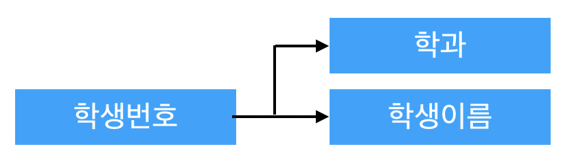 | 이행 규칙 | 학생번호 -> 학과 | 학생번호->학생이름, 학생이름->학과 이므로, 성립 (복수전공은 없다고 가정) |
