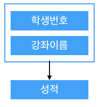 학생수강성적정보 릴레이션의 함수 종속성 다이어그램은 다음과 같다.
