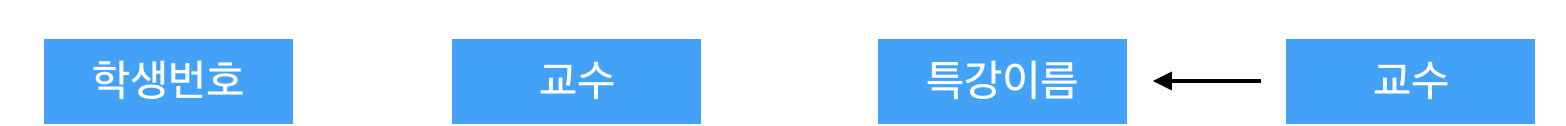 여기서 특강신청 릴레이션에서 교수는 외래키이다.