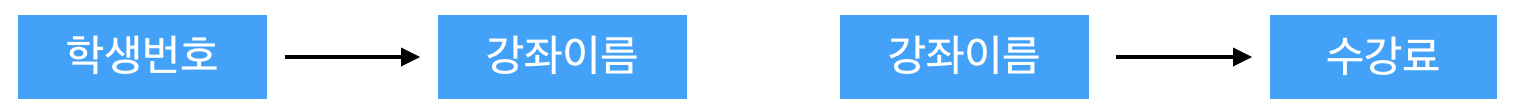 하지만 수강료는 기본키가 아닌 '강좌이름'에 또 종속되어 있다.